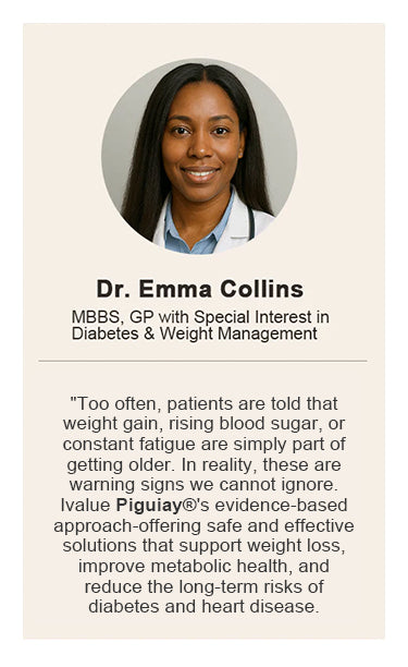 "As an endocrinologist, I am committed to finding effective and natural solutions for metabolic health and weight management. After extensive research and clinical trials with over 5,000 participants, I have found that PIGUIAYยฎ GLP-1 Six in One Health Solution Oral Liquid offers remarkable benefits for metabolism, appetite control, and overall well-being. This formula naturally supports GLP-1 activation, helping regulate blood sugar levels, curb cravings, and enhance fat burning. Its powerful blend of apple cider vinegar, turmeric, and other natural ingredients not only aids in healthy weight loss but also promotes digestive health, boosts immunity, and supports long-term metabolic balance. With the backing of modern medical research, PIGUIAYยฎย GLP-1 Six in One Health Solution Oral Liquidย is a trusted, science-driven choice for those seeking a natural and effective approach to weight management and overall health."